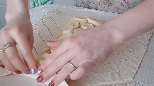 Пирог из слоеного теста с яблоком +банан.ОЧЕНЬ БЫСТРО И ВКУСНО.