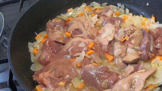 Жаренная куриная печёнка с макаронами