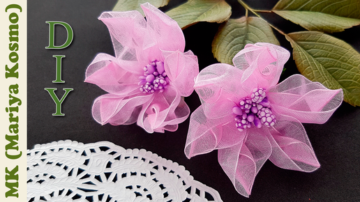 Цветы на стебле из органзы своими руками | канзаши | мк | DIY | flower