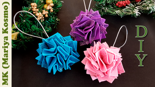 Игрушки шарики на елку из глиттерного фоамирана | новый год | мк | DIY | glitter foamiran | Christmas
