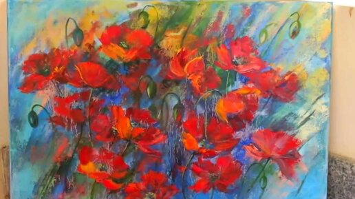 Движение в Потоке - авторская картина с маками маслом на холсте