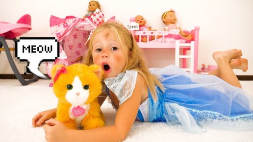 Настя как мама и большие неприятности из-за кота / Nastya and funny toy cat