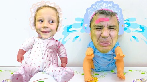 Nastya and dad are pretending to be dolls