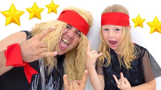Настя и папа играют в шоу талантов с музыкальными инструментами