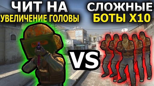 Сильвер с Читом НА Увеличение Головы Vs 10 Сложных Ботов Cs:go