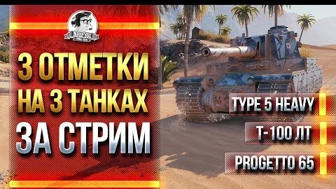 3 Отметки на 3 Танках За Стрим! Type 5 Heavy, Т-100 Лт, Progetto 65