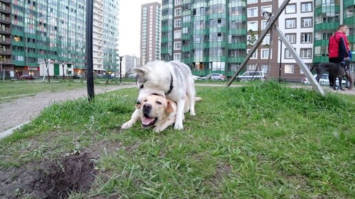 Хаски Капелла тиранит лабрадора. Бесконечные игры собак