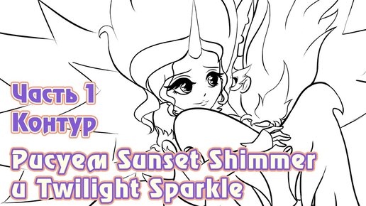Рисуем Sunset Shimmer и Twilight Sparkle из Friendship Games - часть 1 - Контур
