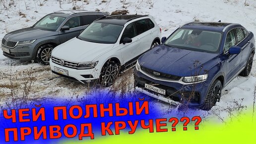 ДЖИЛИ ТУГЕЛА ТИГУАН и ШКОДА КОДИАК на БЕЗДОРОЖЬЕ - ЧЕЙ ПОЛНЫЙ ПРИВОД КРУЧЕ ?