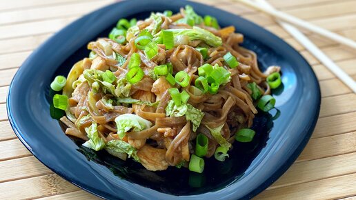 Соба - гречневая лапша с курицей в пикантном соусе
