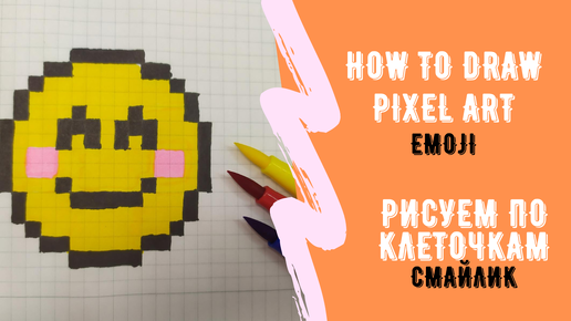 Как нарисовать довольный смайлик с розовыми щечками по клеточкам