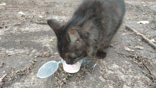 Кошечка очень аппетитно пьет "Чудо молоко"