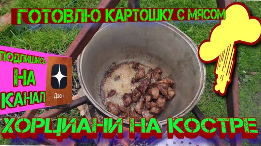 Готовлю картошку с мясом!!!!! Хорциани на костре.