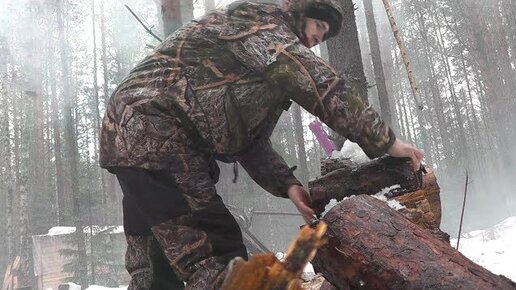 КАКОЙТОВИРУС тут не страшен! Топим ПЕЧЬ В ЗЕМЛЯНКЕ. Ливень поливает.