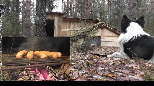 ЛЕС, НОЧЬ, УЖИН! Мужику надо МЯСО! Ночуем в ЗЕМЛЯНКЕ. Рыбалка в октябре