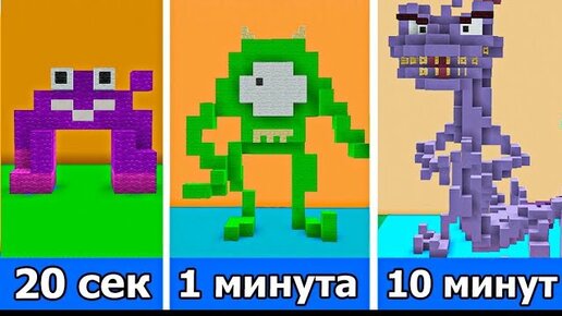 Строим Монстров Из Мультфильма в Майнкрафт За 20 Сек / 1 Минуту / 10 Минут | Битва Строителей