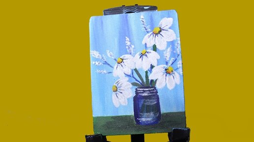 Как нарисовать Ромашки на мини холсте акрилом Daisy Acrylic Painting