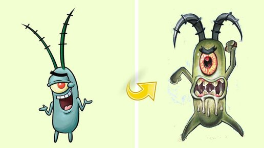 Персонаж Губка Боб Планктон в образе хоррор