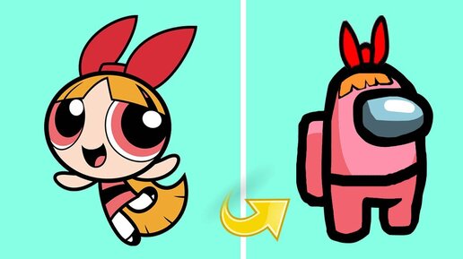 Among Us as Powerpuff Girls Blossom Bubbles Buttercap