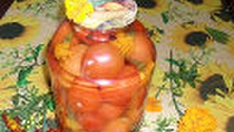 Заготовки на зиму. Помидоры консервированные с виноградом и бархатцами (чорнобрывцами) .