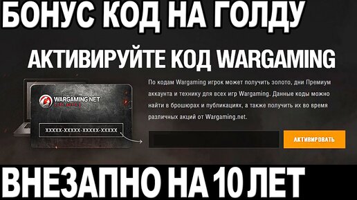 ОГО! ВНЕЗАПНЫЙ БОНУС КОД НА ЗОЛОТО НА 10 ЛЕТ World of Tanks!