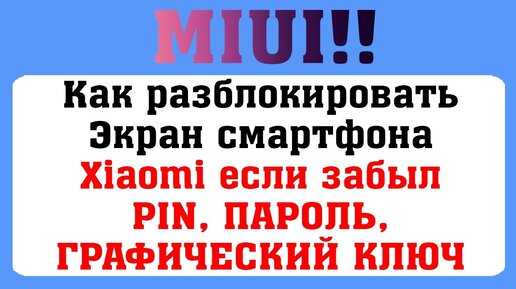 Как разблокировать смартфон XIAOMI? Если забыл пин код Экрана блокировки!