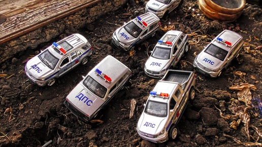 Toy Police Cars Moving on the Ground