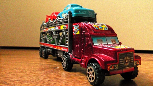 Cheap Plastic Toy Cars Being Transported by 2 Car Transporters