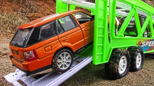 Toy Cars Transportation through sand and snow by Car Transporter + more