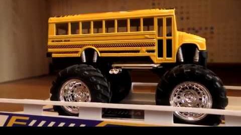 Toy Monster Trucks Driving out from Garage and Transported by Truck for Kids