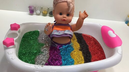 Learn Colors Baby Doll Bath Playing time & Glitter | The Surprise For Kids