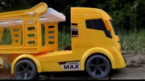 Yellow Transporter Carrying Toy Cars in the Village || Video for Children