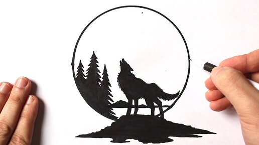 Как нарисовать Волка Воющего на Луну (Ehedov Elnur)
