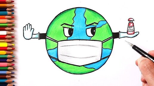 Как нарисовать Землю в Медицинской маске легко | Рисунки для начинающих