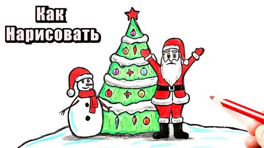 Как нарисовать красивую елку ⛄🎄🎅 Как нарисовать Снеговика и Деда Мороза