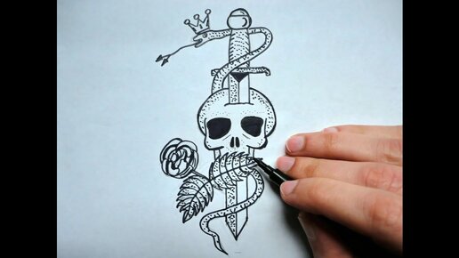 Как нарисовать Скелет Клинок Змею и Розу