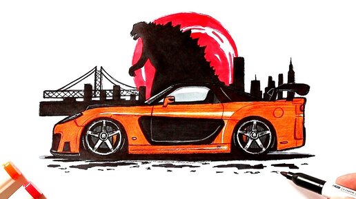 Как нарисовать машину Хана из Форсажа | Mazda Efini RX-7 | car drawing