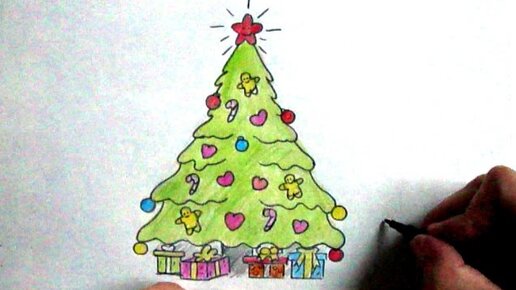 Как нарисовать Новогоднюю елку карандашом