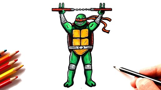 Как нарисовать Черепашку Ниндзя | Рисуем Микеланджело | TMNT
