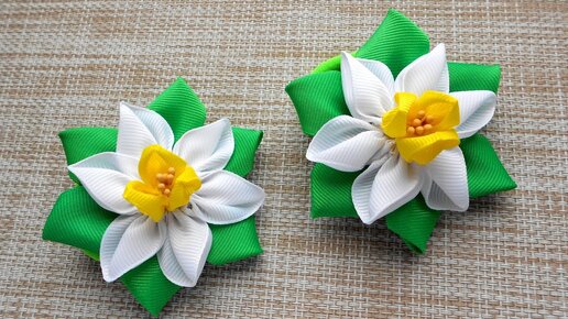 Нарциссы из лент, мастер класс КАНЗАШИ