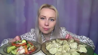 Мукбанг Пельмени домашние, салат овощной/ Mukbang пельмешки самолепные/ еда на камеру!