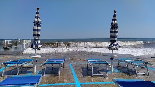 Пляж на юге Италии в середине июня. Сегодня Адриатика волнуется