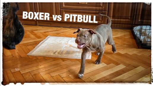 Питбуль НАПАЛ на БОКСЁРА Питбуль Джина 2 месяца против боксёр Тайсон 10 лет