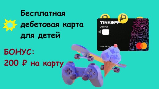 БЕСПЛАТНАЯ детская карта Тинькофф Джуниор и 200 ₽ в подарок.