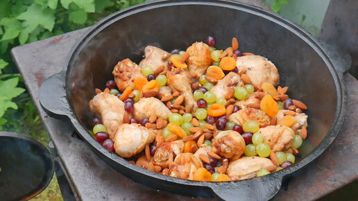 Курица по-турецки в казане. Соус из баклажанов на мангале.