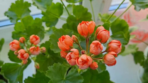 Распускаются бутоны на тюльпановидной пеларгонии Red Pandora