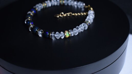 Настоящий черные эфиопские опалы в обрамлении горного хрусталя! Браслет "Сокровища раджи".