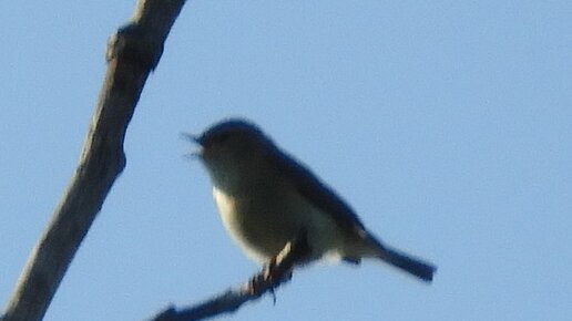 Биосфера. Фото-видео снайпер № 1. Пеночка теньковка на верхушке дерева. Предельный зум.