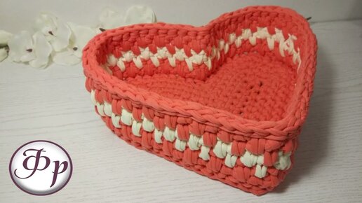 Корзинка сердце из трикотажной пряжи. Вяжем дно в форме сердечка