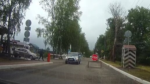 Показываю выезд из Плеса на машине и шлагбаум на границе города